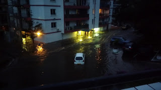 Et comme jamais 2 sans 3 le vendredi 16 février nous avons était victimes d'une inondation géante . Un mur de clôture en amont de la résidence a cédé sous la pression de l'eau qui s'était accumulée derrière après une nuit pluvieuse. Une vague monumentale s'est alors déversée sur nous transformant notre jolie résidence en une piscine géante. Inutile de vous rappeler que nous habitons au rez de chaussée....nous sommes sortis aidés par Nico un voisin par la fenêtre du salon au niveau de laquelle l'eau, qui commençait à rentrer grand jet dans la maison, arrivait.